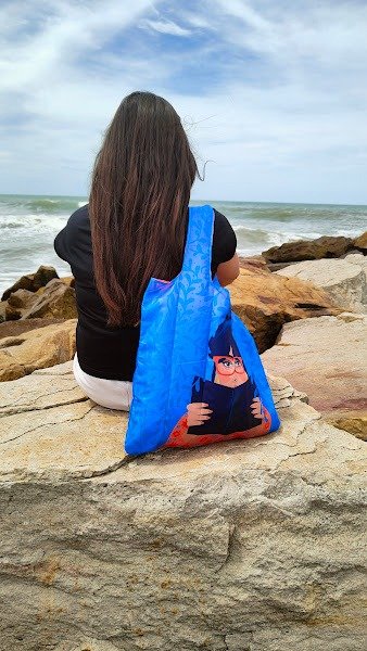 Bolsa diseño TOTE BAG confeccionada en una sola pieza en tela 100% impermeable. Con doble costura, recta y overlock para mayor resistencia al peso y para que las manijas no se zafen. Aptas para lavarse en lavarropas, lavado común infinidad de veces. No se deforman ni pierden color.